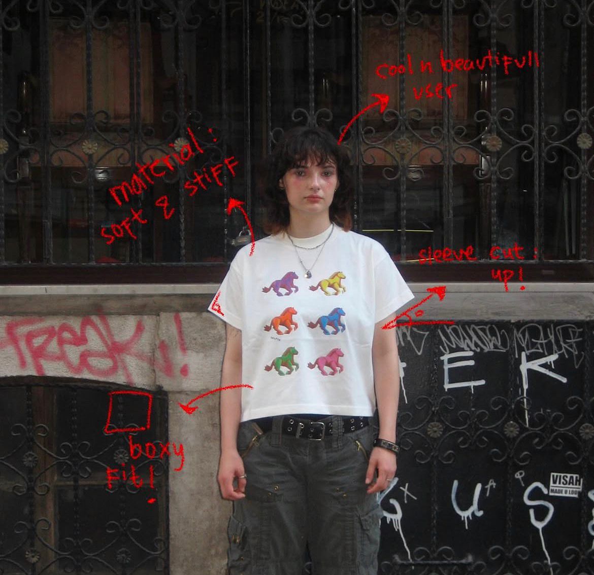Airbrush Boxy T-shirt "Horse" Unisex Kaos Printing Katun Lengan Naik