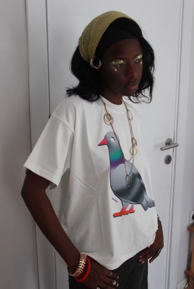 Airbrush Boxy T-shirt "Pigeon" Unisex Kaus Katun Lengan Naik